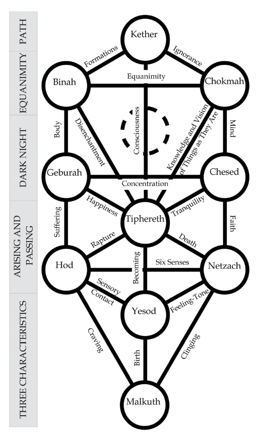Correspondences between the nidanas and the paths of the Tree of Life.